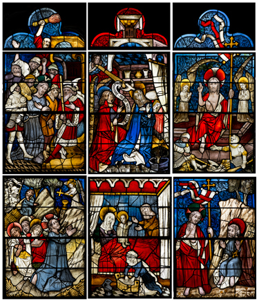 These six panels are just a section from the huge seven-window display created for the Church at Boppard in the 1440s. Much of this stained glass survives in museums all over the world.