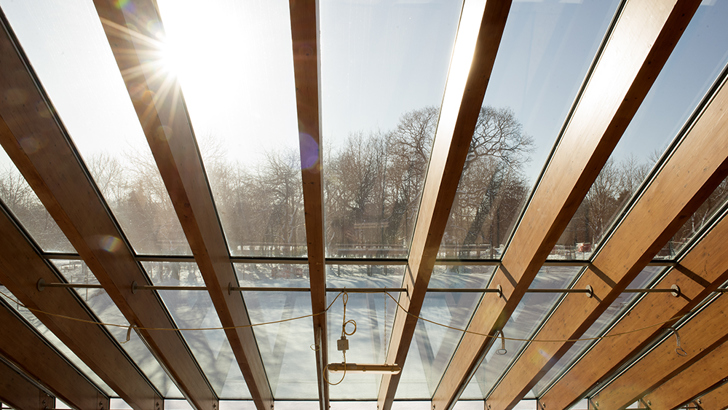 The building harnesses solar energy through photovoltaic cells hidden on the flat roof. These maximise the opportunities to benefit from the warming effect of sunlight, use natural daylight for viewing the Collection and in turn, reduce energy consumption.