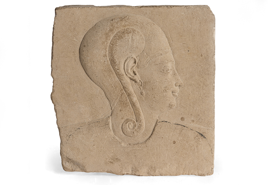 This prince’s hairstyle with a long braid at the side is an Ancient Egyptian symbol of youth. Usually children had their heads shaved, apart from this sidelock.