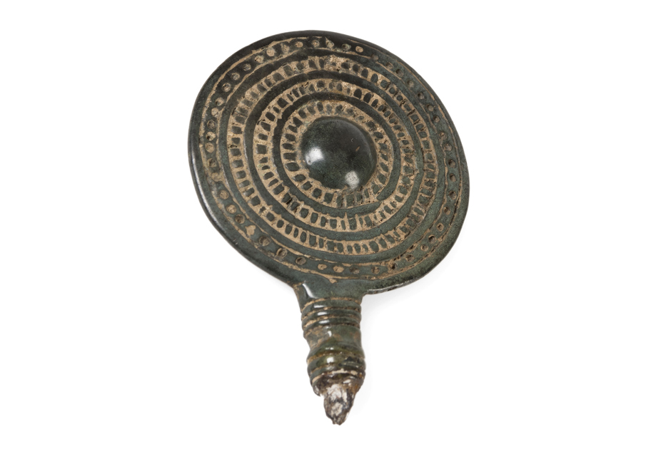 This hairpin used to shine brightly like gold. A long stem, now missing, would have held the owner’s hair in place.