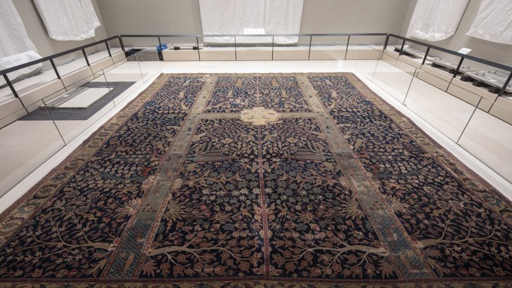 A personal highlight for me was seeing the Wagner garden carpet in person, laid out in all its glory, as one of the earliest surviving Persian garden carpets in the world (and has rarely been on public display since The Burrell Collection first opened in 1983). This kind of exhibit dovetails wonderfully alongside new and innovative digital interpretations that are a feature throughout the museum…
