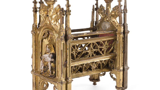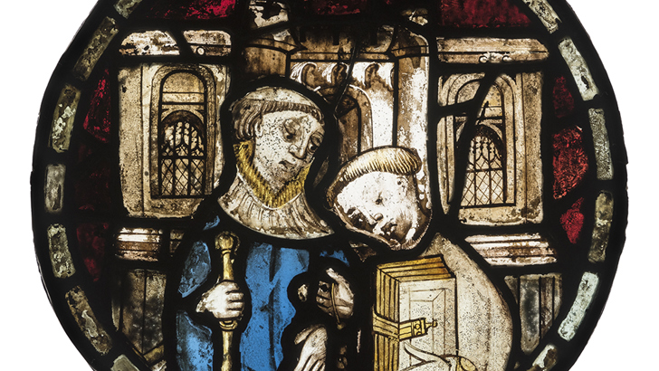 Stained glass panel ‘Two Monks’. Made in England, 1300s. (accession number 45.35)